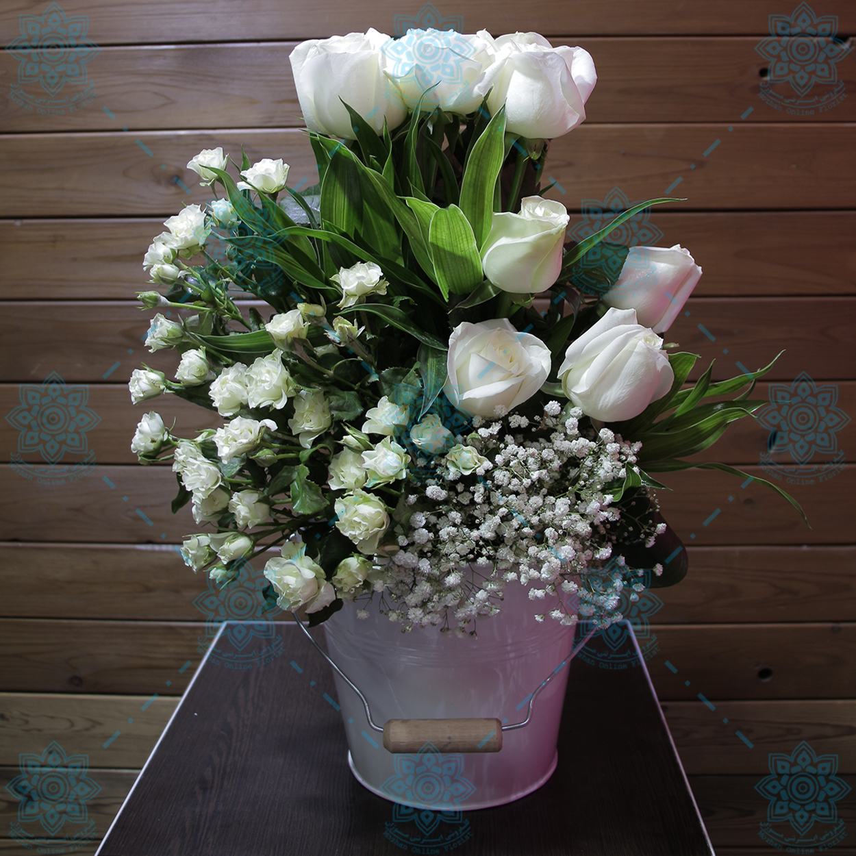گل های بکار رفته شده در این کار 10 شاخه رز هلندی 2دسته رز مینیاتوری است .زیره کار از سطل و اسفنج خارجی استفاده شده است .